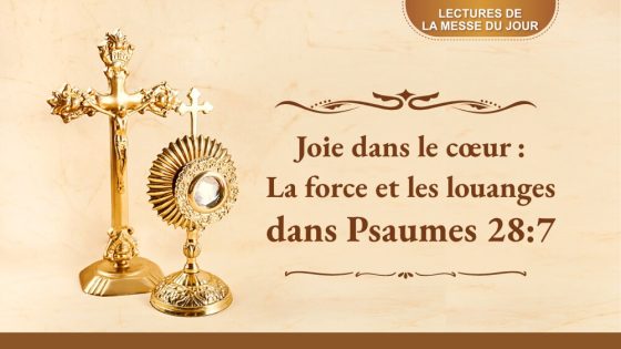 Verset de la messe du jour : « L'Éternel est ma force et mon bouclier ; En lui mon cœur se confie, et je suis secouru ; J'ai de l'allégresse dans le cœur, Et je le loue par mes chants » (Psaumes 28:7)...