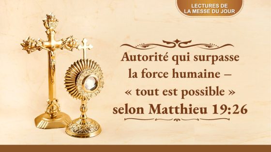 Verset de la messe d’aujourd’hui : Le Seigneur Jésus a dit : « […] Aux hommes cela est impossible, mais à Dieu tout est possible » (Matthieu 19:26). Ce verset démontre profondément l’autorité et la p...